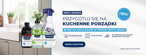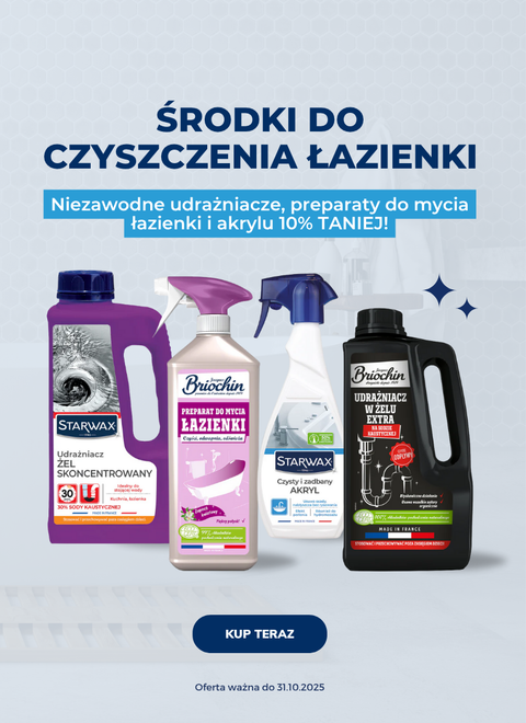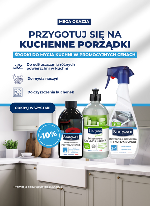 Interesują Cię skuteczne, przystępne cenowo środki czystości? Sklep internetowy Starwax to wszystko, czego potrzebujesz! Jesteśmy jedyną marką, która oferuje kompletną gamę środków czystości oraz akcesoriów do czyszczenia i konserwacji domu.