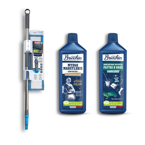 Zestaw Mop Expert Flexi Click System w połączeniu z mydłem marsylskim Briochin i Koncentratem do mycia płytek i gresu Briochin to kompleksowe rozwiązanie do sprzątania, które łączy wygodę, skuteczność i wszechstronność. Dzięki innowacyjnym produktom, sprzątanie staje się łatwiejsze, bardziej efektywne i przyjemniejsze, zapewniając doskonałą czystość w całym domu.